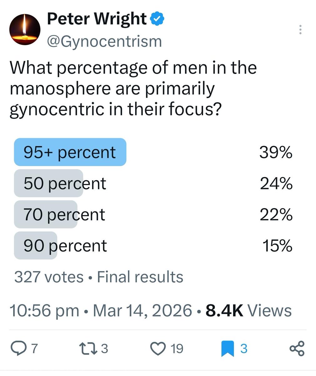 Gynocentrism (n.) refers to a dominant focus on women’s needs and wants relative to men’s needs and wants. This can happen in the context of cultural conventions, social institutions, political policies, and in gendered relationships.1 |